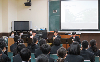 いかがですか? この制服を着て,一緒に文武両道に励みましょう!
