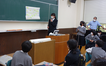 質問をしたり、アドバイスをいただいたりする中で、生徒達は様々な視点を得て企画を見直していました。地域といってもその範囲は広く、長い歴史の中で醸成された地域の現状を正しく把握することは容易ではないことに気がつく生徒も多かったようです。