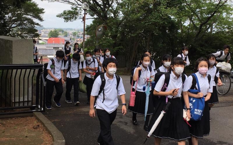 約120年前に龍ヶ崎中学校(旧制)が仮校舎として利用していた大統寺・般若院をはじめとする寺社や商店街を実際に見て,地域に対する理解を深めました。