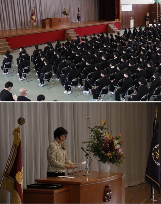 到着後,入所式を行いました。2年生が式をスムーズに進行します。